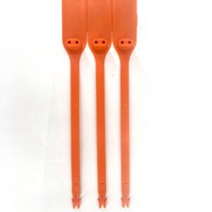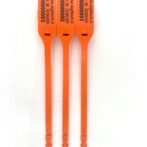 Sigilli a chiusura fissa Debaseal a marchio Sigiltech. Disponibili in versione blu (22 cm) e arancione (10 cm). Dotati di numerazione univoca progressiva randomica non sequenziale su pattella. Confezionati in sacchetti da 10 pezzi.